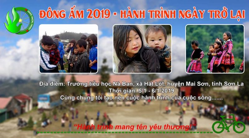 Chào các bạn, nối tiếp sự thành công của chương trình ‘Hơi ấm vùng cao‘ suốt 3 năm qua. Năm nay Tổ chức HĐXH Hành Trình Xanh tiếp tục tổ chức vận động, quyên góp quần áo, sách vở và đồ dùng sinh hoạt …cho chương trình ‘Đông Ấm 2019‘ tại điểm trường Phiêng Trai, xã Hát Lót, huyện Mai Sơn, Sơn La. Ban tổ chức rất mong nhận được sự quan tâm và đóng góp từ quý các nhà hảo tâm để giúp đỡ những hoàn cảnh khó khăn, những em học sinh có điều kiện học tập tốt hơn.