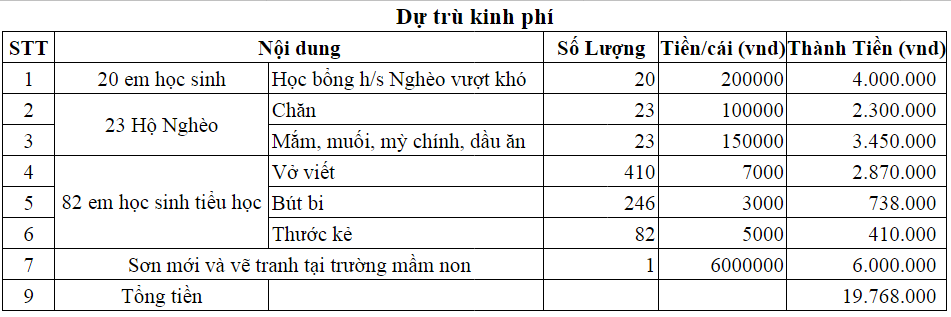 Dự trù kinh phí