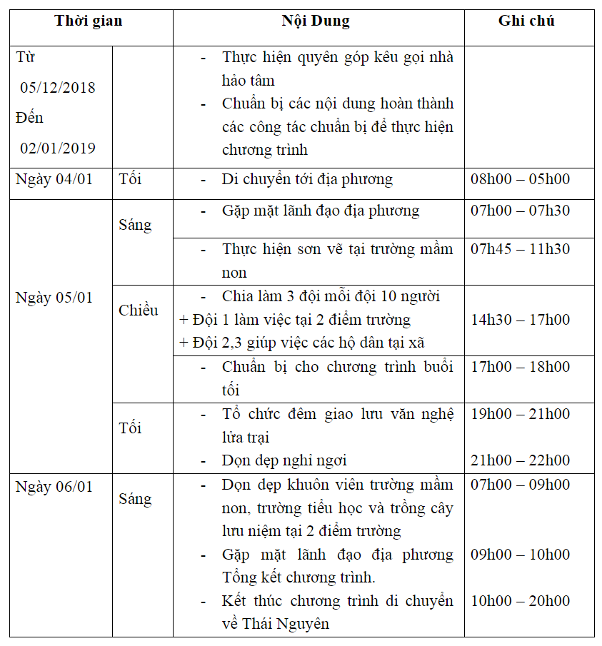 - Thực hiện các kế hoạch tình nguyện với mong muốn gửi những yêu thương và sự sẻ chia ấm áp tới quê các miền trên mọi miền Tổ quốc.